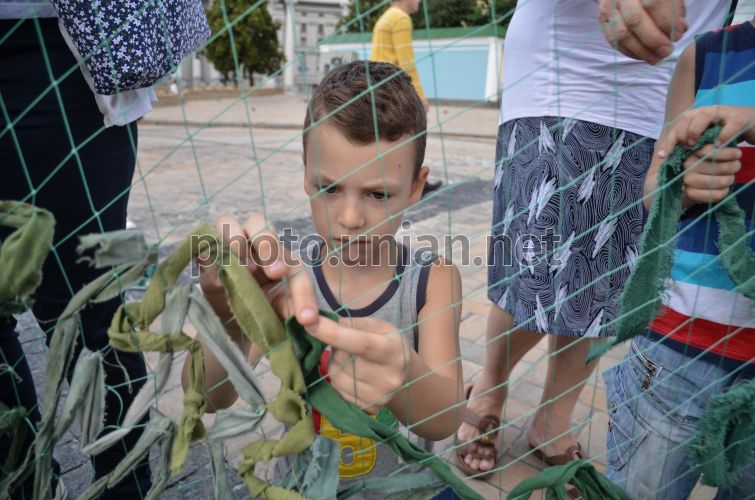 The greatest camouflage mesh woven at St. Michael's Square in Kyiv