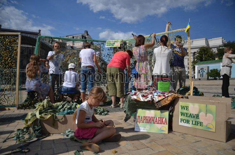 The greatest camouflage mesh woven at St. Michael's Square in Kyiv