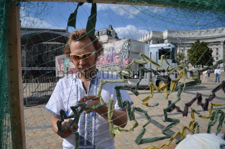 The greatest camouflage mesh woven at St. Michael's Square in Kyiv