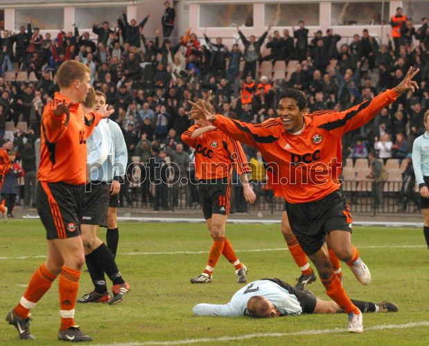 Brazilian forward Evaeverson Lemos da Silva (Brandau) of Shakhtar Donetsk celebrates as he scored a goal against Alexandria club during their 21-th round Ukrainian championship soccer match in Ukraine's eastern town of Donetsk on Sunday, April 20, 2003. Shaktar won 5:0.