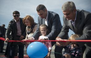 The opening of the new transport interchange on the street. Honore de Balzac in Kiev