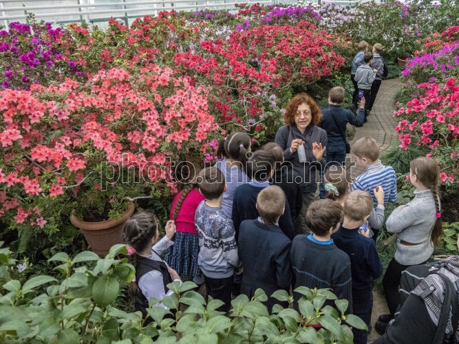 Azalea exhibition in the botanical garden in Kyiv