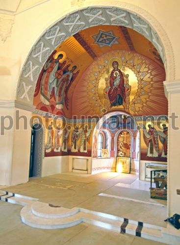Sculpture of the ancient Greek god of healing Asclepius at the entrance to the Family Pharmacy in Chernivtsi