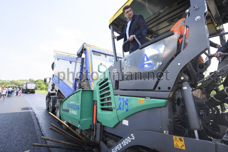 Prime Minister Vladimir Groisman checks the status of repair work on roads in three regions of Ukraine