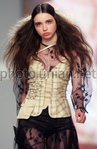Model demonstrating suit by Ukrainian designersYelena Molchanova and Ulyana Chava during fashion show at Ukrainian Fashion Week Kiev, on Thursday, October 16th, 2007. Photo by Sergey Svetlitsky / UNIAN