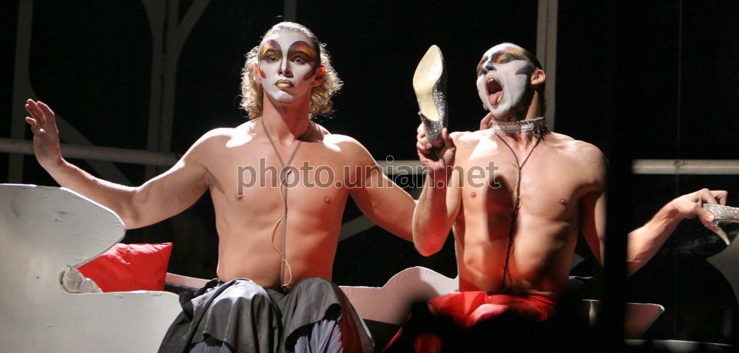 Famous Russian actor Dmitry Bozin as Solange, on the right, and Dmitry Zhoidik as Cleare in the staging of Jean Jean "Maids" in L'viv, on Thursday, October, 18th, 2007. Known work of Jean Jean Roman Viktyuk put his own way, originally and interesting. He considers that maids in performance of Jean Jean must be played by male actors. Photo UNIAN