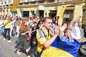 The procession of fans in support of the Ukrainian team before the match Ukraine-Serbia in Lviv
