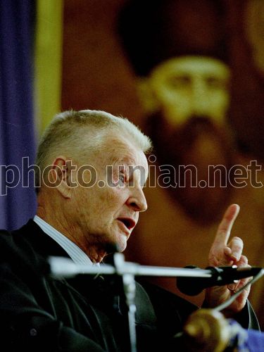 COMM A well-known American political scientist Zbigniew Brzezinski declares that the image of Ukraine will be essentially improved in USA opinion in the case of true and honest presidential elections, during his contribution at a meeting with Kiev-Mogylyanska Academy students, Kiev, Friday, May 14, 2004. Zbigniew Brzezinski, former Carter National Security Advisor, now Counselor, Center for Strategic and International Studies arrived in Kiev with a private visit. Photo by UNIAN