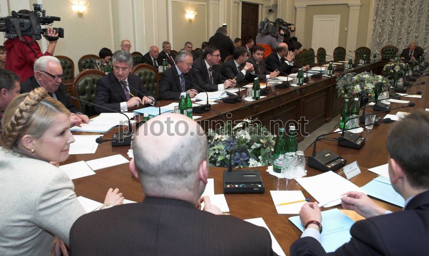 Participants of the preparation group meeting on organizing the first session of Verkhovna Rada of the VI convocationn in Kiev on Wednesday, on November, 7 2007 Meeting was chaired by Speaker of Verkhovna Rada of Ukraine of 5th convocation Aleksandr Moroz and with participation of newly electected Members of Parliament. Photo by Anastasia Sirotkina / POOL / UNIAN