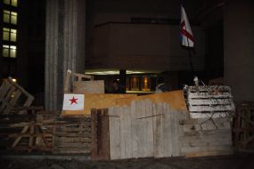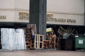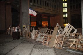 Barricades near the Supreme Council of the Autonomous Republic of Crimea in Simferopol