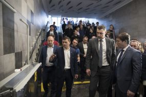 Kyiv Mayor Vitali Klitschko visited the metro station "Levoberezhnaya" after repair