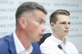 Press conference the general director of the companies "Promotion Outsourcing" Artem Mikhailov and the lawyer Denis Ovcharov. - Photobank UNIANPhotobank UNIAN